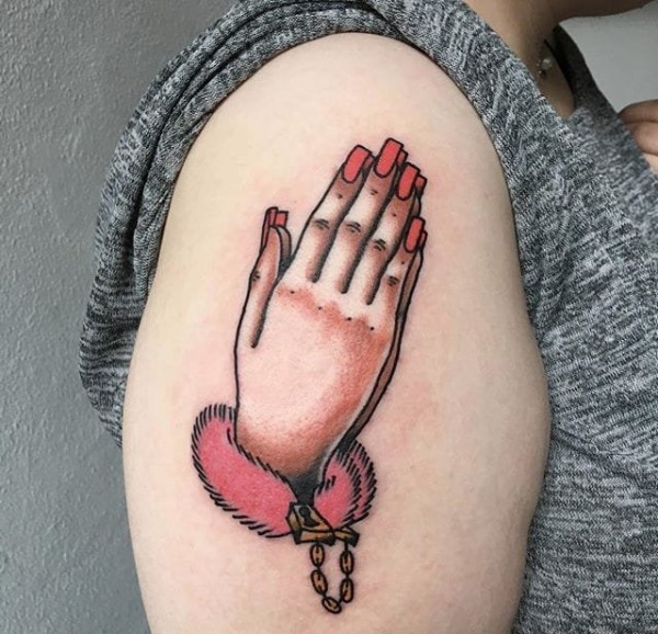 恋人一双漂亮的戴着手铐的祈祷之手纹身图案