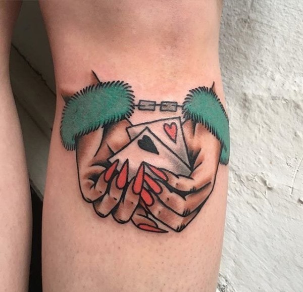 恋人一双漂亮的戴着手铐的祈祷之手纹身图案