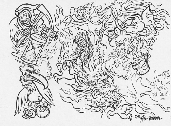 龙纹身手稿_一组老传统黑灰龙手稿纹身图案