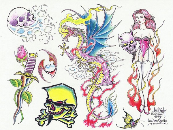 龙纹身手稿_一组老传统黑灰龙手稿纹身图案