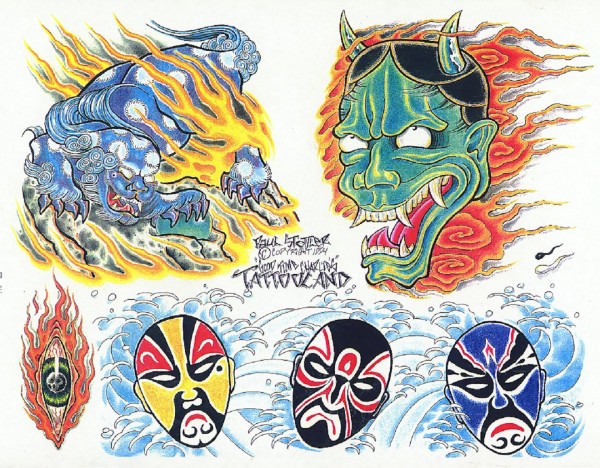 能面万媚纹身手稿_52张日式能剧面具纹身手稿图案素材欣赏