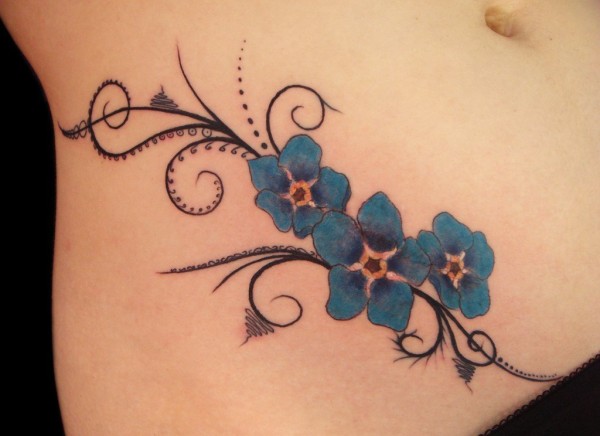 分享一款腰部时尚性感的蝶恋花纹身图案_腰部纹身图案大全_纹身图吧