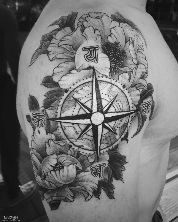 女生肩花纹身_15张女性双肩对称的肩花纹身图案作品图片
