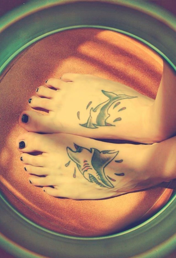 女性双脚上的同款匹配的纹身图案