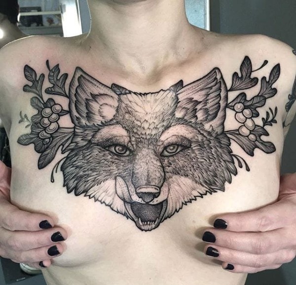 女性大花胸纹身_43张霸气漂亮的女性大花胸纹身图案作品