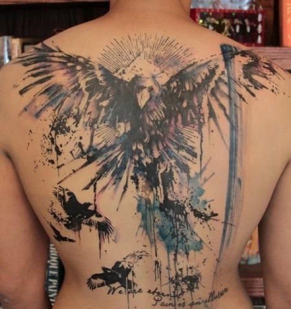 男性背部满背超霸气白头鹰纹身图案