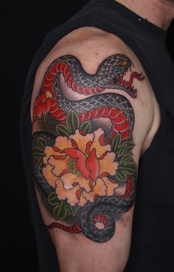 手臂莲花蛇纹身图案_臂部纹身图案大全_纹身图吧