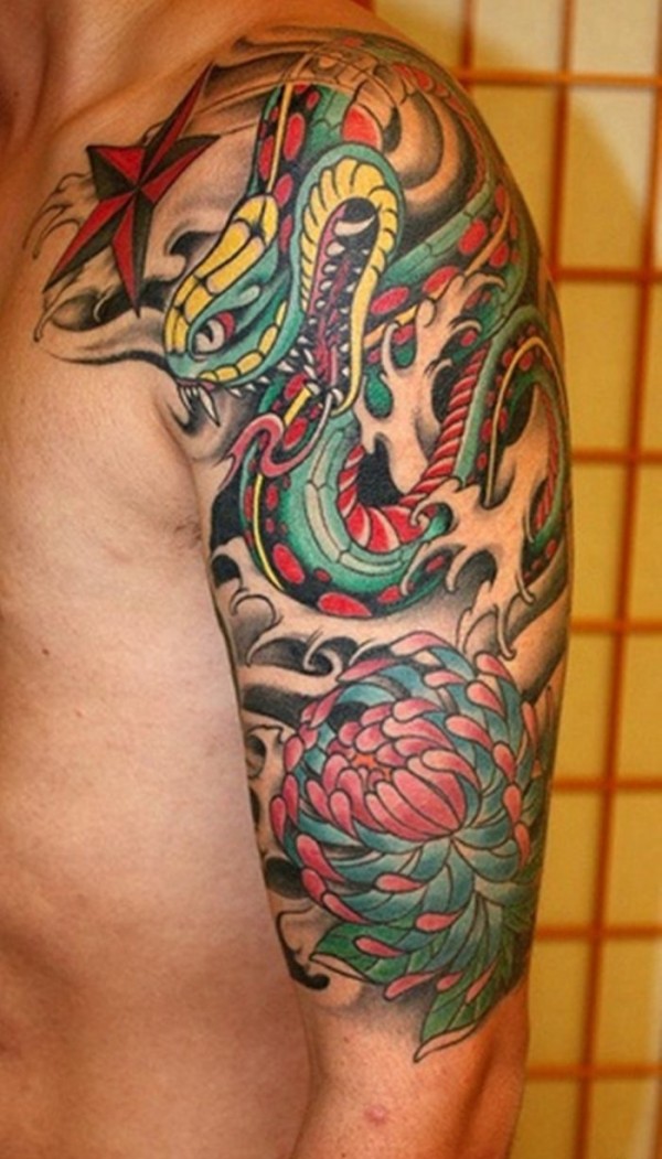 手臂莲花蛇纹身图案_臂部纹身图案大全_纹身图吧