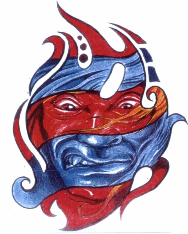 能面万媚纹身手稿_52张日式能剧面具纹身手稿图案素材欣赏