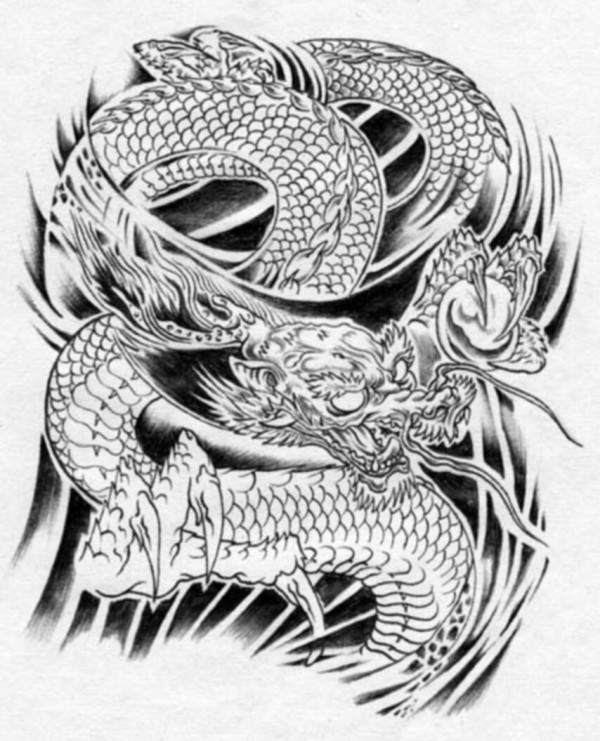 龙纹身手稿_一组老传统黑灰龙手稿纹身图案