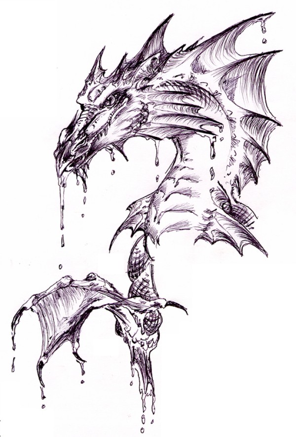 龙纹身手稿_一组老传统黑灰龙手稿纹身图案