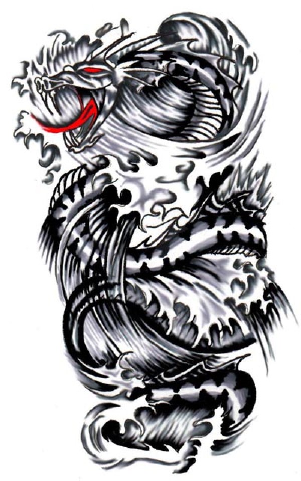 龙纹身手稿_一组老传统黑灰龙手稿纹身图案