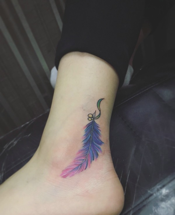 脚踝羽毛文身作品