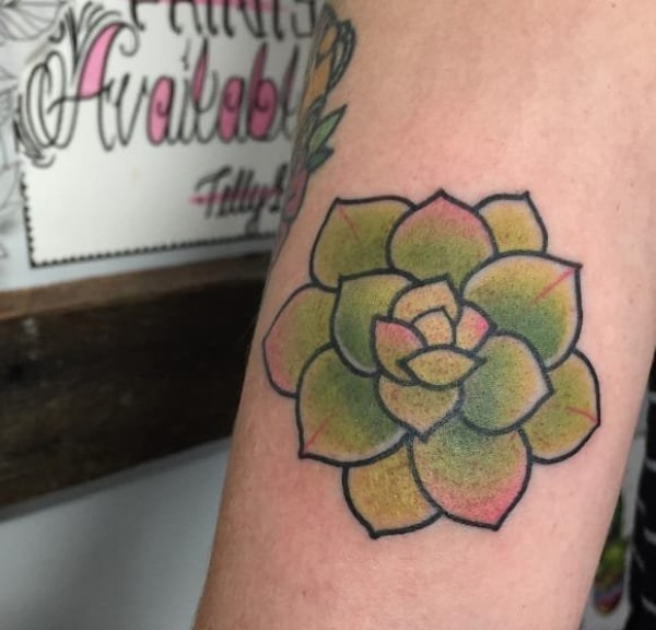 女生喜爱的13款彩色的甜美的多肉植物纹身图案