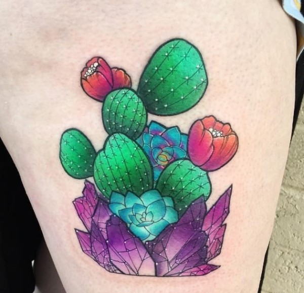 女生喜爱的13款彩色的甜美的多肉植物纹身图案