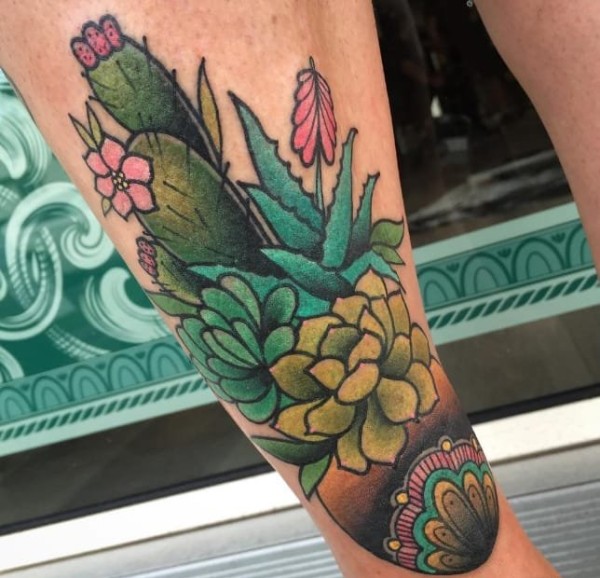 女生喜爱的13款彩色的甜美的多肉植物纹身图案