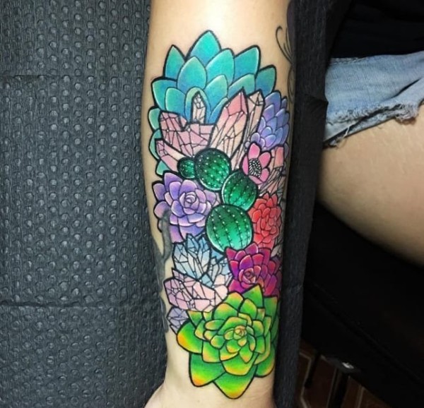女生喜爱的13款彩色的甜美的多肉植物纹身图案