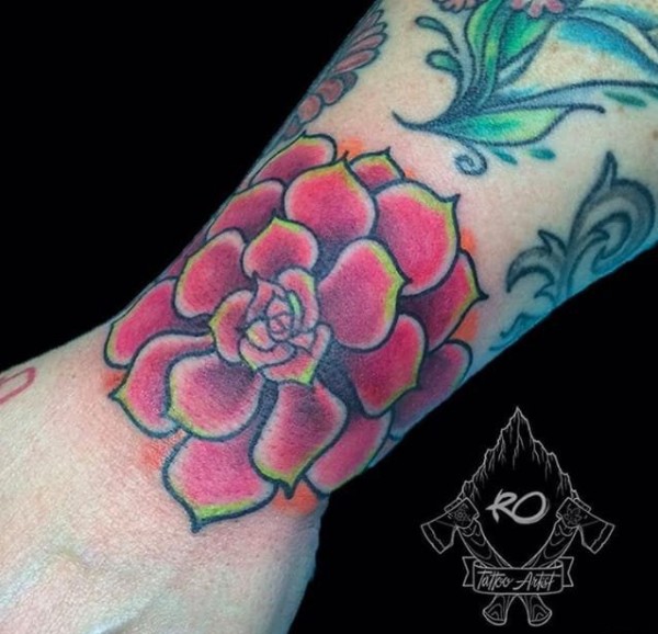 女生喜爱的13款彩色的甜美的多肉植物纹身图案