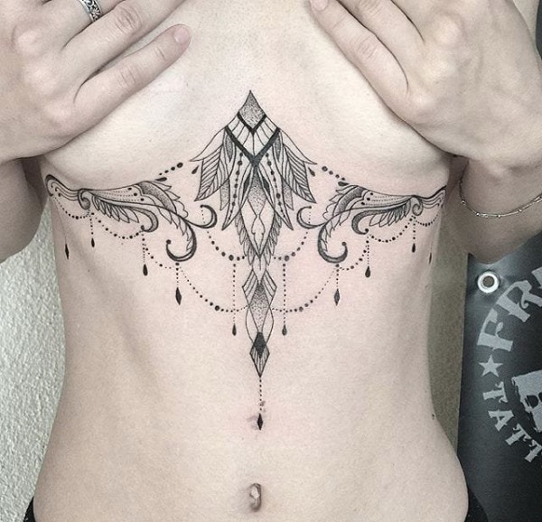 多款女性胸骨腹部上漂亮精致的装饰风格纹身图案