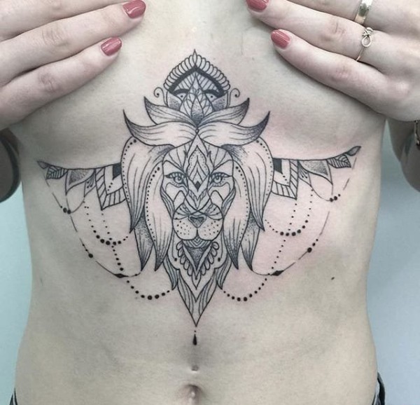 多款女性胸骨腹部上漂亮精致的装饰风格纹身图案