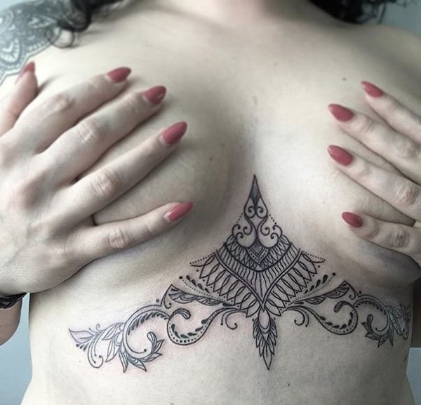 多款女性胸骨腹部上漂亮精致的装饰风格纹身图案