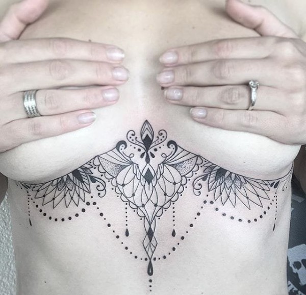 多款女性胸骨腹部上漂亮精致的装饰风格纹身图案