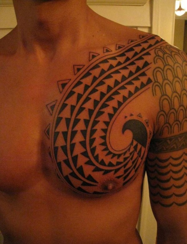 男性左半甲帅气的黑色部落图腾纹身图片黑色,部落