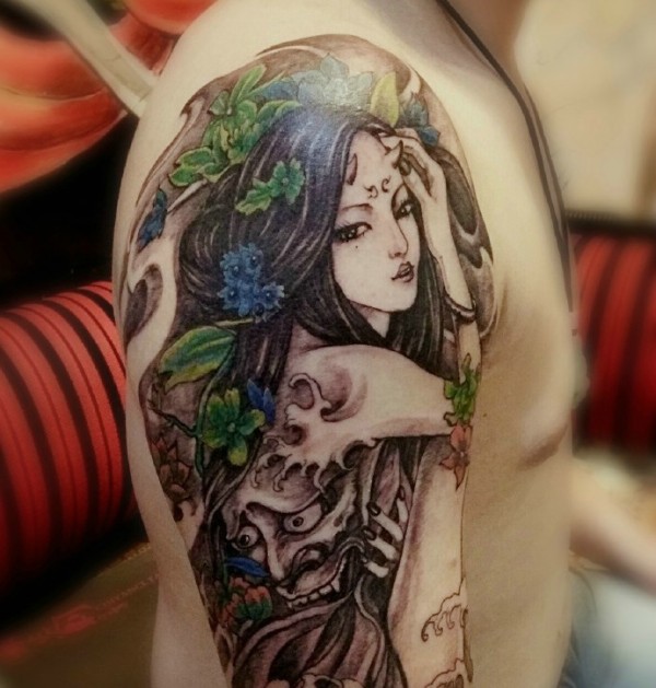 能面万媚纹身手稿_52张日式能剧面具纹身手稿图案素材欣赏