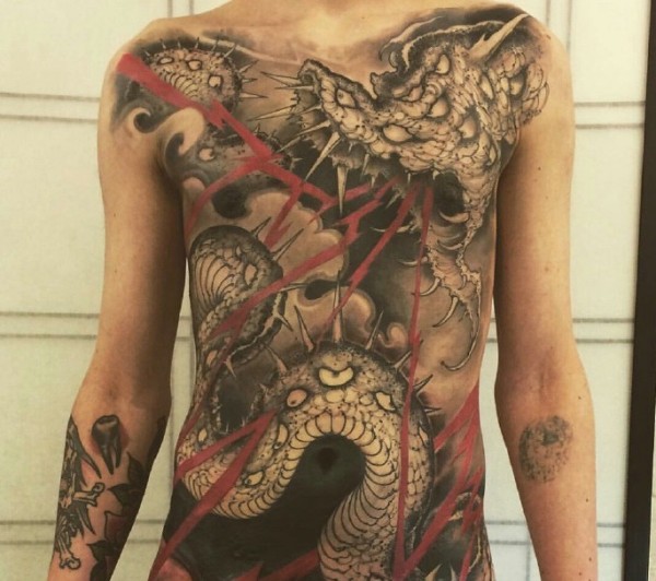 日式手彫刺青作品—半甲龙很感谢客户认可手彫刺青,手彫是日本纹身的手工雕刻技术,时间可以追溯到日本17世纪的江户时代。19世纪,手彫技术被日本黑帮挪用,被用作入会仪式,象征着从此就是江湖中人。在日式传统