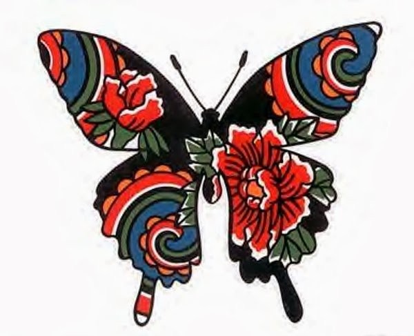 漂亮的多式样的蝴蝶纹身图案手稿素材