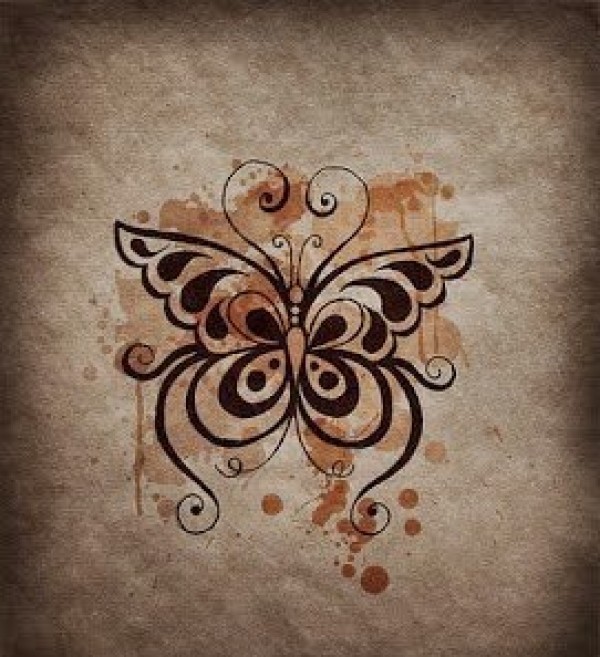 漂亮的多式样的蝴蝶纹身图案手稿素材