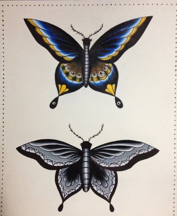 漂亮的多式样的蝴蝶纹身图案手稿素材