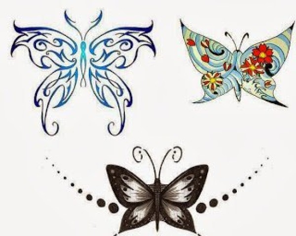 漂亮的多式样的蝴蝶纹身图案手稿素材