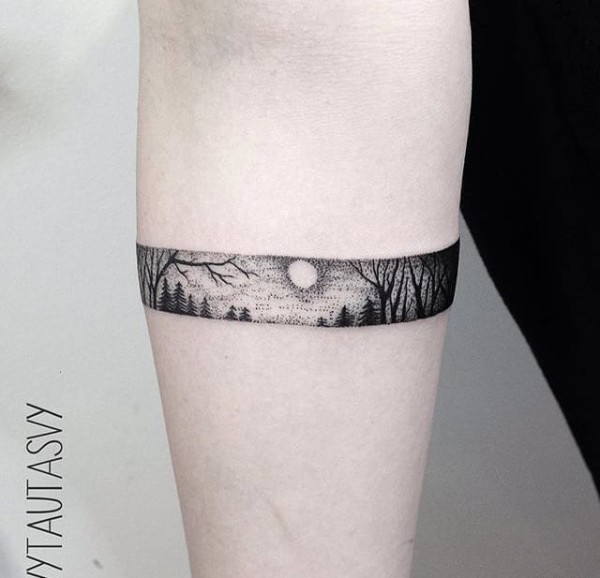 25款男性黑色手臂线条纹身点刺技巧半甲纹身图案