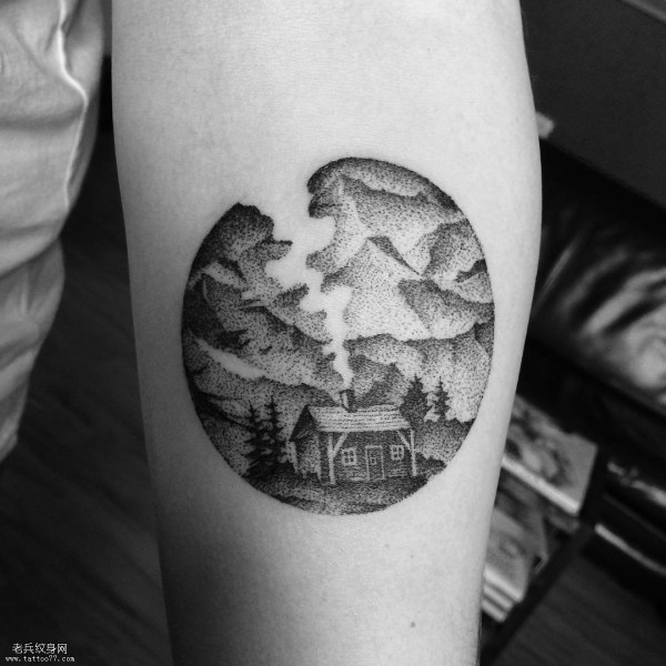 大臂山水纹身图案