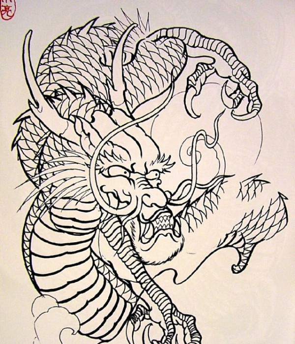 龙纹身手稿_一组老传统黑灰龙手稿纹身图案