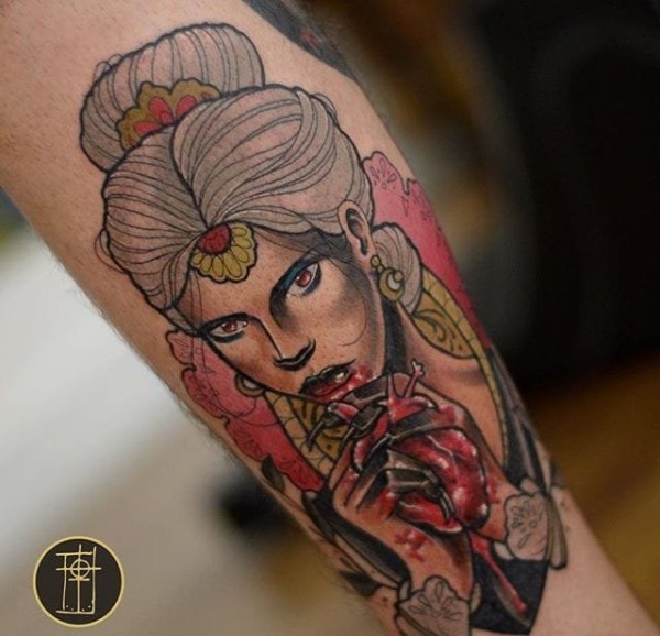 强烈的新传统女士纹身图案来自于纹身师洛博内托