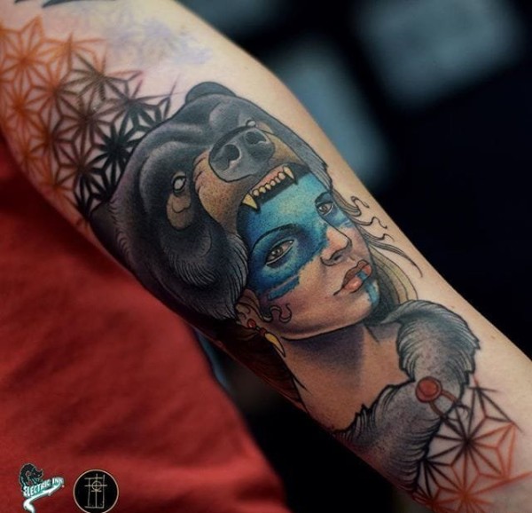 强烈的新传统女士纹身图案来自于纹身师洛博内托