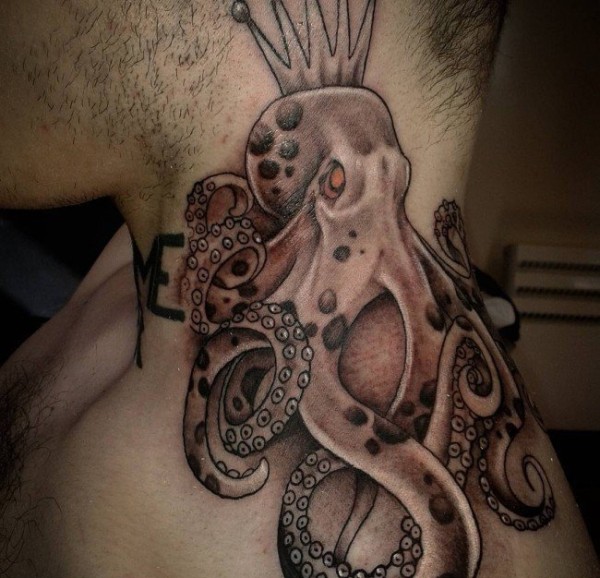 缠绕在肩膀上的漂亮章鱼纹身图案