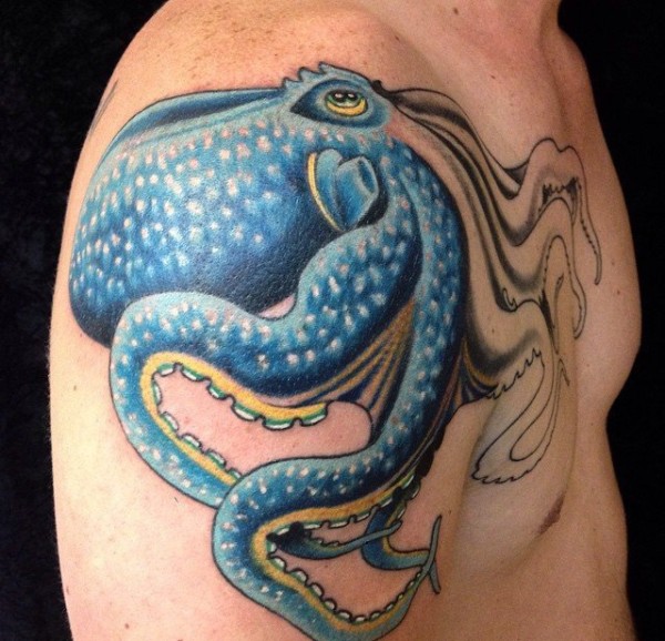 缠绕在肩膀上的漂亮章鱼纹身图案