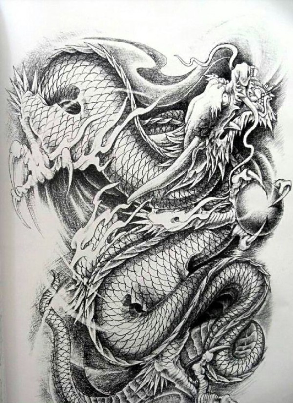 龙纹身手稿_一组老传统黑灰龙手稿纹身图案