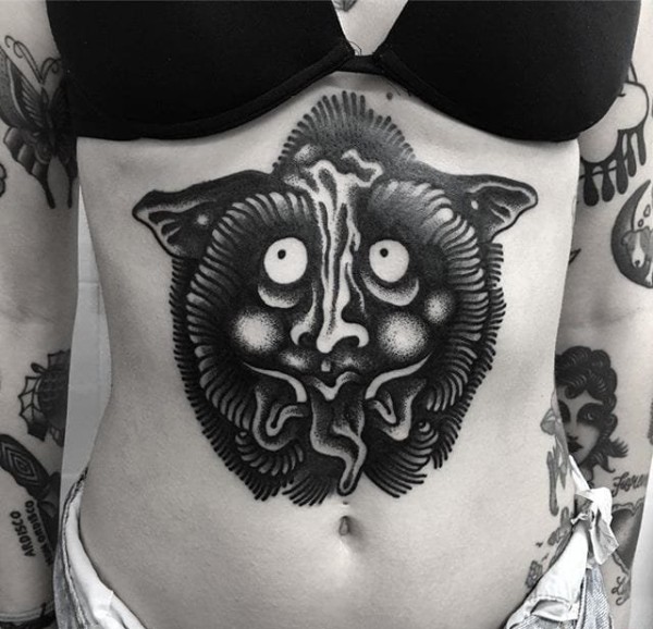 黑色鬼面妖怪面具般若纹身图案来自纹身师西蒙