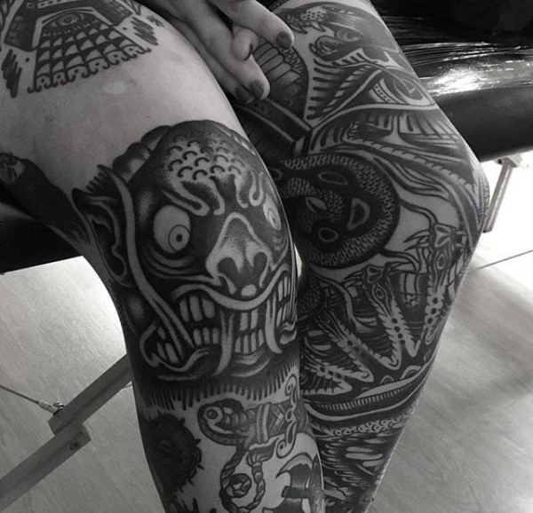 黑色鬼面妖怪面具般若纹身图案来自纹身师西蒙