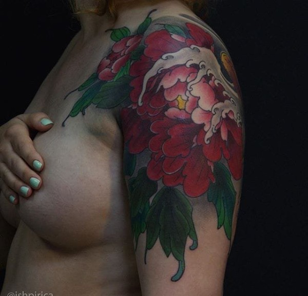 逼真的超现实主义花纹身图案来自纹身师莫拉莱斯