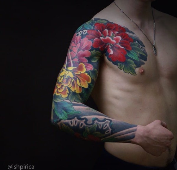 充满活力的彩色花朵纹身图案来自于纹身师Artemy Neumoin