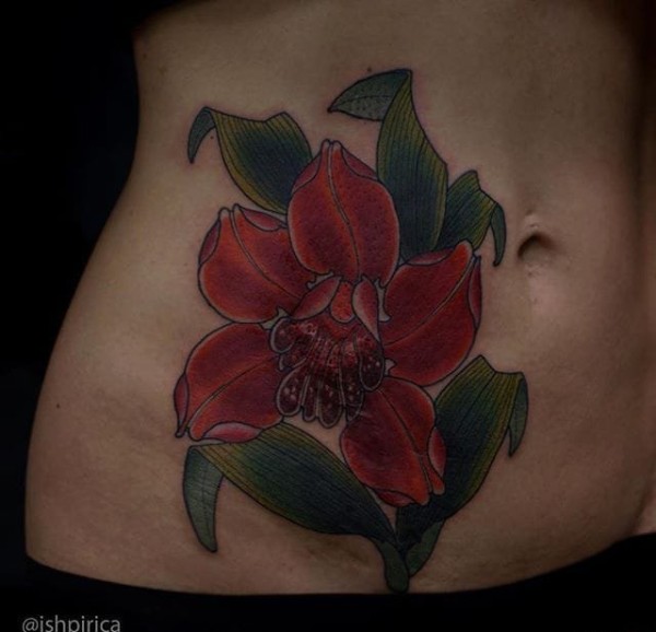 逼真的超现实主义花纹身图案来自纹身师莫拉莱斯