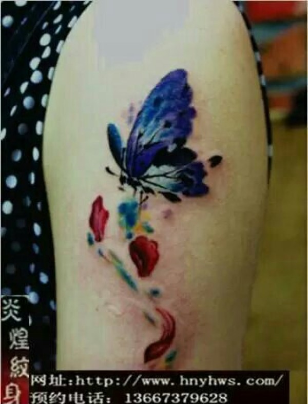 水墨彩色蝴蝶纹身 长沙炎煌纹身