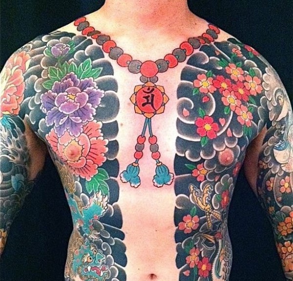 神圣的佛珠项链纹身男人喜欢的吉祥纹身图案