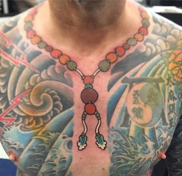神圣的佛珠项链纹身男人喜欢的吉祥纹身图案