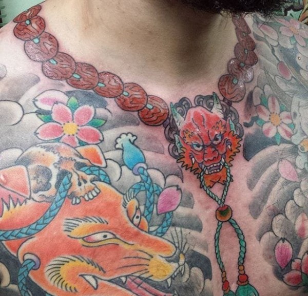 神圣的佛珠项链纹身男人喜欢的吉祥纹身图案